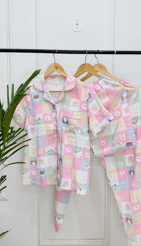 Dreamy Drapes Imported Premium 3-Piece Padded Night Suit – Pastel Patchwork