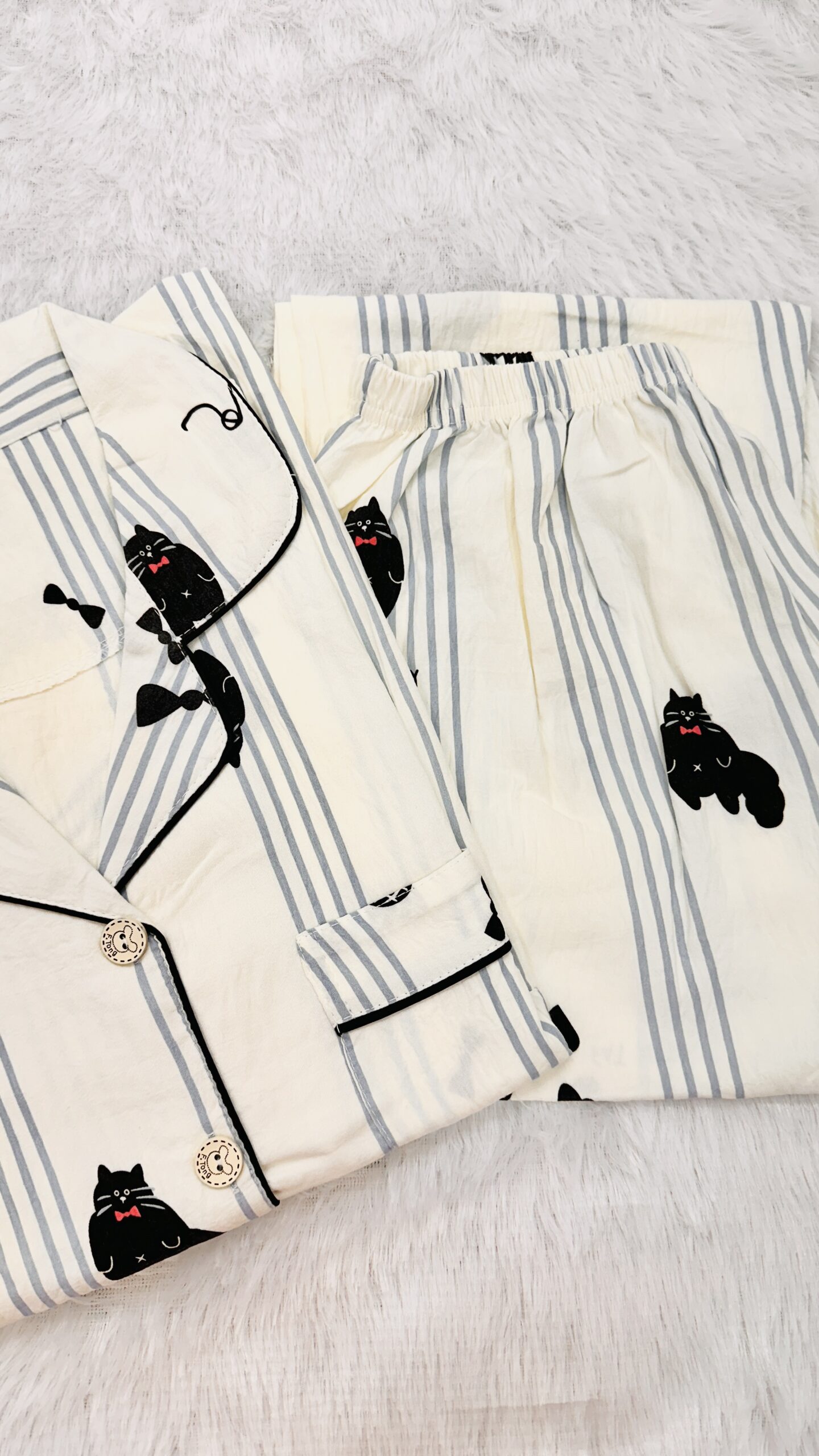 ✔ Playful prints – striped base with fun cat motifs for a trendy touch.